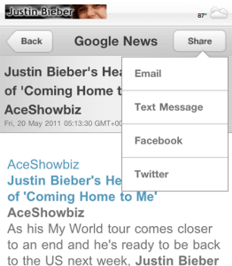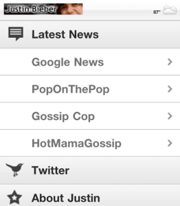 Seperti developer doapp yang membuat aplikasi Justin Beiber untuk Blackberry Appworld. Aplikasi khusus untuk Blackberry ini akan menampilkan berita terbaru seputar Justin dari sumber berita Google News, PopOnThePop, Gossip Cop dan HotMamaGossip. Tidak hanya berita, para Belieber juga bisa mengikuti aktifitas Twitter justin Beiber, serta informasi lengkap tentang Justin.