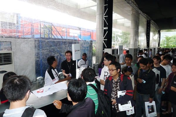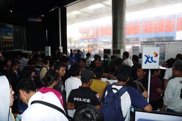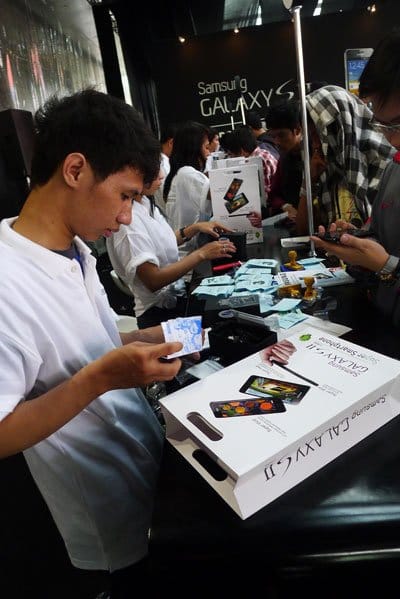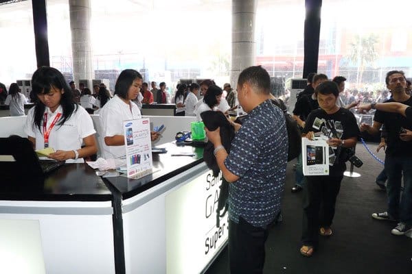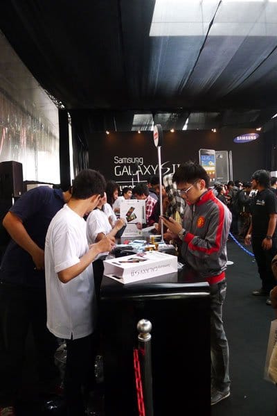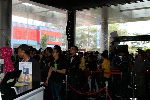 Penjualan baru dibuka pada pukul 09.00 pagi tadi bagi para pengantre yang telah memiliki nomor antrean. Namun animo masyarakat yang tetap antusias dengan gadget terbaru dari Samsung ini bahkan masih terlihat rela mengantre dengan panjang walaupun dari pihak Samsung telah menutup antrean sejak pukul 00.30 dini hari karena pengantre telah memenuhi kuota persediaan yang disediakan oleh samsung sebanyak 1200 unit.