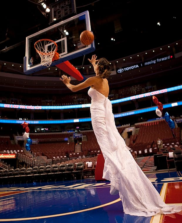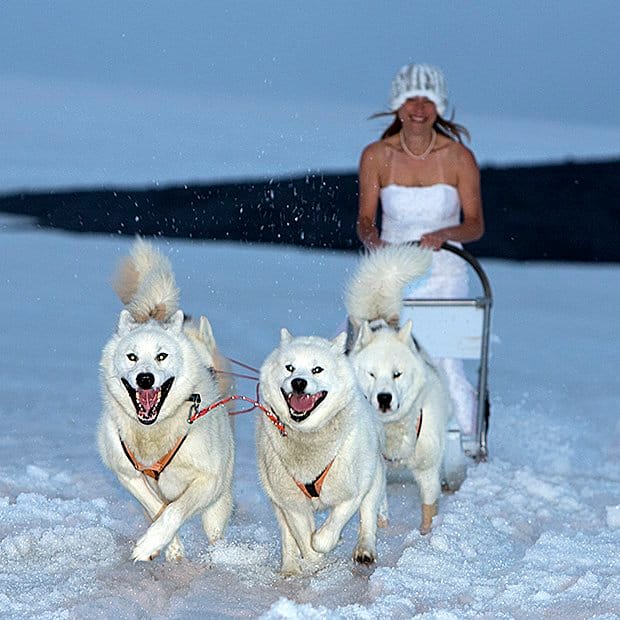 Ide fotonya, Jennifer mengenakan gaun yang sama di berbagai tempat tersebut. Posenya juga bukan hanya menghadap ke kamera, tapi juga saat melakukan aktivitas yang unik mulai dari naik kereta salju di Islandia, menyelam di Jamaica, paragliding, sampai memasukkan bola di lapangan NBA. Semua dengan baju pengantin yang sama.