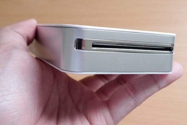Di samping kiri bodi, Anda hanya akan menemukan sebuah tombol power. Slot USB dan micro USB ditempatkan di samping kanan bodi yang bersembunyi di balik penutup. Untuk memasukkan kertas foto, Anda bisa membuka penutup bagian atasnya. Penutup bodinya ini juga bisa dibuka, sehingga pengguna dapat menarik kertas keluar jika kertas tiba-tiba tersangkut saat sedang mencetak.