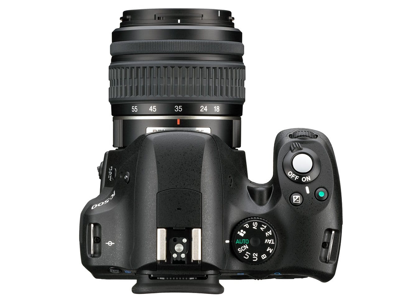 Untuk segmen di bawahnya, Pentax K-500 juga memiliki sebagian spesifikasi yang ada di Pentax K-50, tapi dengan sedikit pemangkasan di sana sini. Ini cukup wajar menginggat Pentax K-500 diposisikan sebagai kamera DSLR kelas pemula yang harganya juga lebih murah. Satu perbedaan nyata terletak di fisiknya. Bodi Pentax K-500 tidak dilengkapi fitur ketahanan cuaca seperti Pentax K-50. Kecepatannya juga berbeda, dengan kemampuan continuous shoot yang hanya 5.3 fps. Untuk baterai, Pentax K500 menggunakan 4 buah baterai AA.