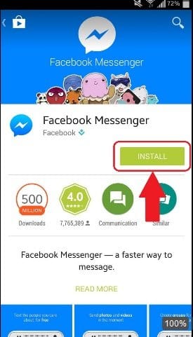 1. Sebelum aplikasi Facebook Messenger ada dalam ponsel pintar Anda, Facebook akan terus memaksa untuk mengunduhnya. Tidak ada cara lain, ikuti kemauan Facebook dengan memilih Install atau Get App.