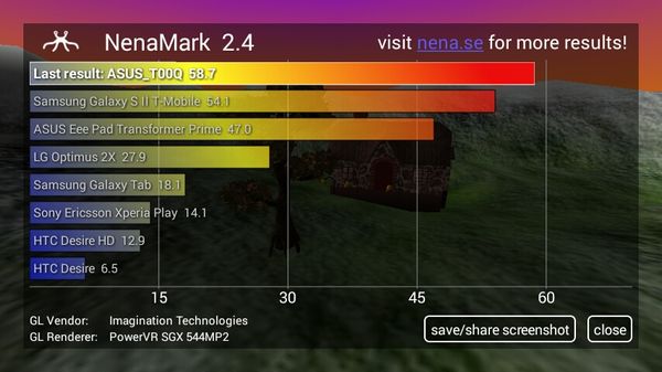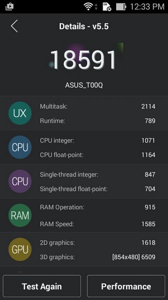 Dari hasil benchmark Antutu, Asus Zenfone 4s mendapatkan skor 18591. Sementara di Quadrant Standard ponsel ini mendapatkan angka 6744 poin. Benchmark pengolahan grafik NenaMark 2 memberi nilai tinggi pada Zenfone 4s, dengan angka 58,7 frame per detik. Adapun untuk multitouch, Asus Zenfone 4s bisa menerima hingga 10 sentuhan sekaligus.
