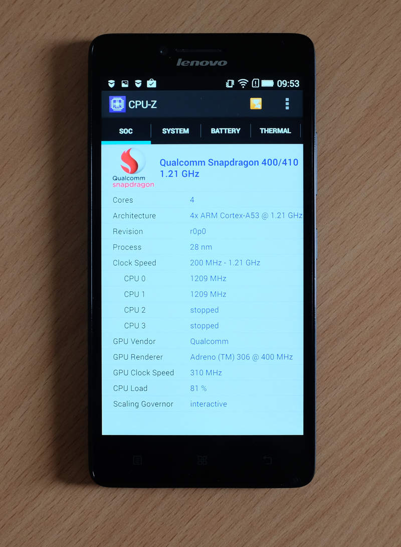 Chipset;Qualcomm MSM8916 Snapdragon 410