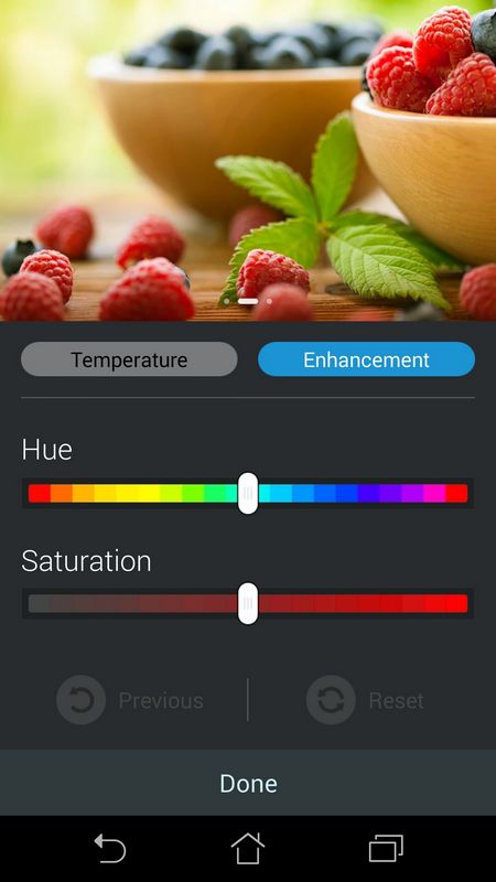 Dalam kondisi standar, warna-warni yang muncul sudah memanjakan mata pengguna, tapi jika Anda merasa kurang, Asus menyertakan fitur Splendid. Dengan fitur ini, Anda dapat mengatur suhu layar, kontras dan saturasi warna. Jadi tampilan di layar akan dapat disesuaikan dengan selera Anda.