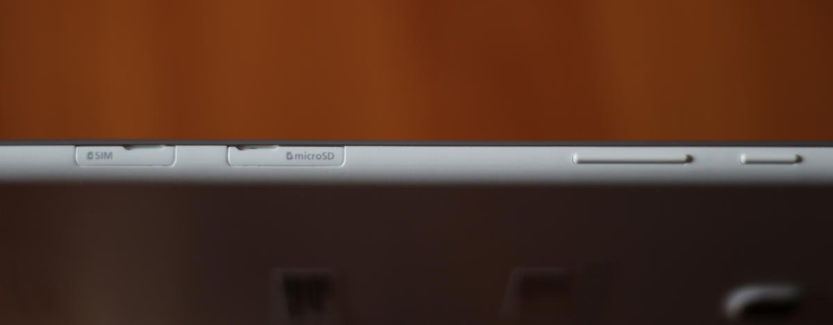 Kualitas rancang bangunnya amat baik dan rapi, dengan bingkai layar yang tipis sehingga memberikan kesan langsing dan modern. Di casing belakang, terdapat dua pin bundar yang lebih mirip “kancing” sebagai mekanisme pengunci casing, persis seperti pada Samsung di Galaxy Tab S.