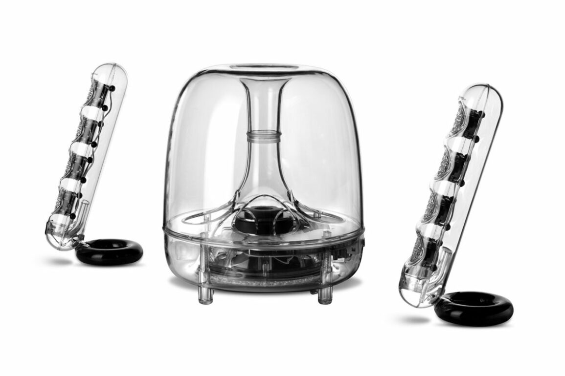 SoundSticks Wireless ini terdiri dari dua speaker satelit dan satu subwoofer 6 inci yang sama-sama transparan. Untuk mengendalikan volume, speaker ini mengandalkan kendali sentuh.