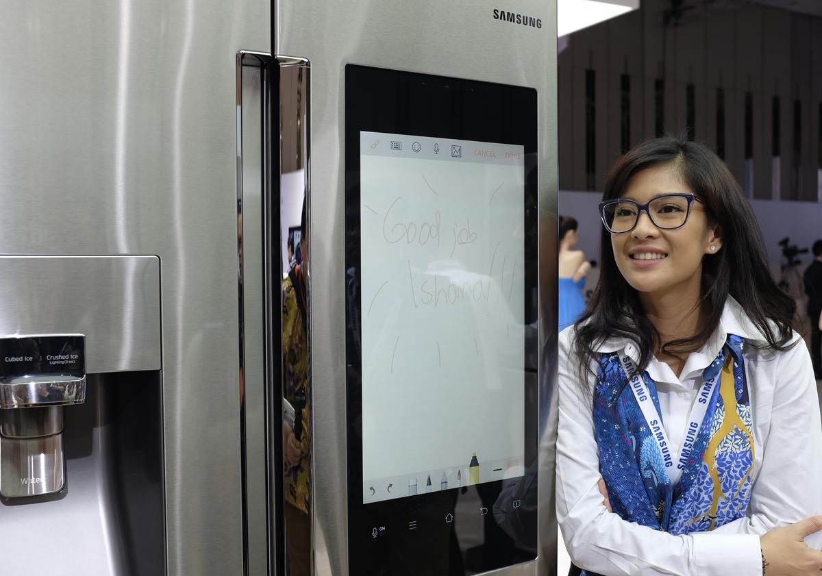 Mengambil kebiasaan pengguna tersebut, Samsung menciptakan Family Hub Refrigerator. Inilah kulkas pintar side-by-side yang telah dibekali layar sentuh 21,5 inci dengan OS Tizen. Dengan layar di pintu, kulkas akan dapat menampilkan berbagai informasi dan konten mulai dari foto, catatan, hingga video. Juga ada kamera di pintu untuk menampilkan isi kulkas dan dapat diakses dari jauh melalui smartphone.