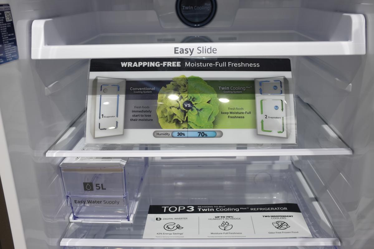 Tentunya kepintaran tidak harus diwujudkan dalam bentuk layar sentuh di pintu. Inovasi yang lebih praktis dan berguna dalam keseharian dapat ditemukan di kulkas RT7000 dengan teknologi Twin Cooling Plus. Dengan teknologi Twin Cooling Plus tersebut, kulkas ini memiliki dua evaporator sehingga memiliki aliran udara yang terpisah untuk bagian freezer dan bagian pendingin.