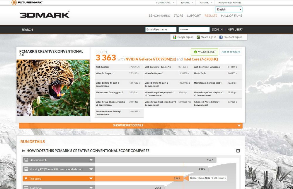 Tidak hanya untuk gaming, spesifikasi di atas juga sanggup untuk mendukung pekerjaan-pekerjaan berat seperti editing foto dan video, maupun rendering 3D. Untuk lebih menggambarkan performa dari Predator 17, berikut hasil dari beberapa software benchmark yang kami jalankan: