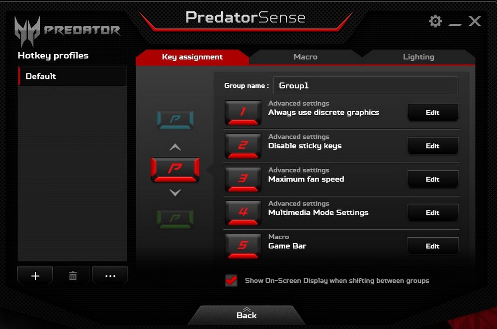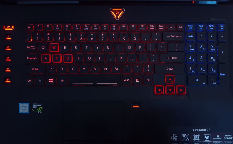 Acer Predator 17 dibekali full-sized keyboard bergaya chiclet. Beberapa tombol yang biasa digunakan untuk gaming disajikan dalam balutan warna merah. Selain itu, Acer juga menyediakan beberapa tombol macro yang bisa diatur sesuai kebutuhan melalui software PredatorSense.