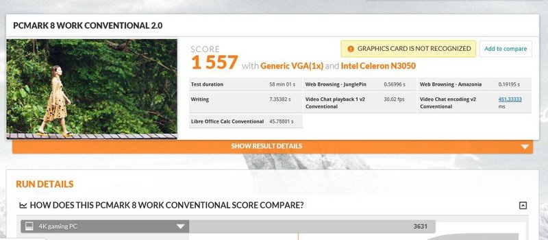 Untuk lebih jelasnya, langsung saja simak hasil benchmark dari software PCMark 8 yang kami jalankan: