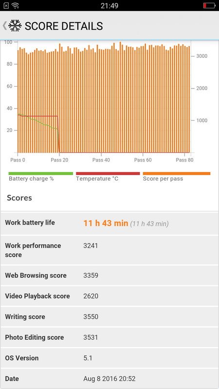 Namun sayangnya, Oppo F1s belum memiliki fitur fast charging sehingga proses pengisian daya terasa lama. Simak hasil pengujian baterai Oppo F1s menggunakan aplikasi PCMark for Android (battery test) di bawah ini.