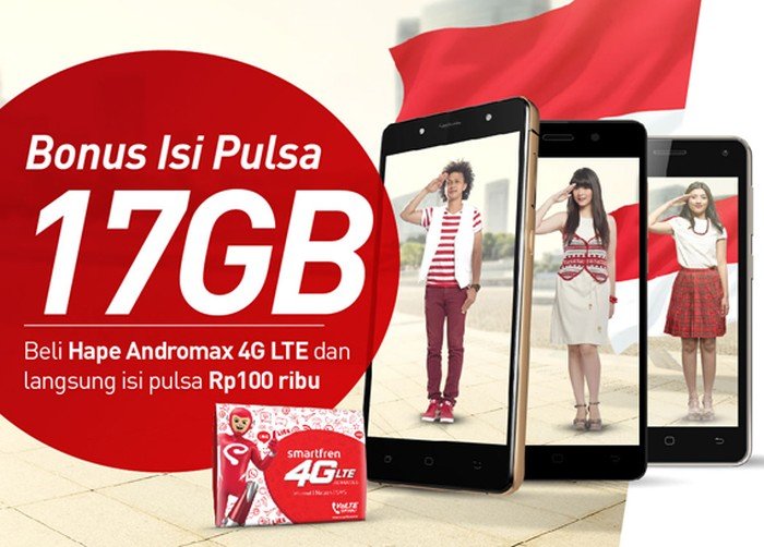 Menyambut perayaan Hari Kemerdekaan Republik Indonesia yang ke-71, Smartfren menawarkan bonus yang menarik bagi setiap pembelian smartphone Andromax 4G LTE. Bonus tersebut berupa kuota data yang besarnya mencapai 17 GB.