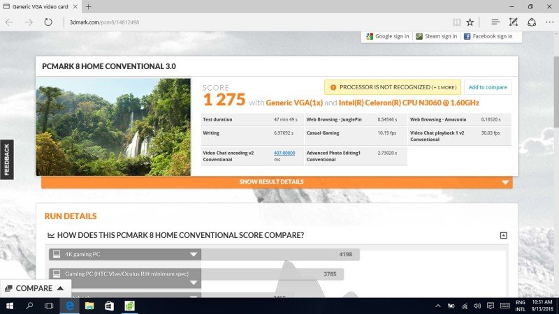 Untuk lebih menggambarkan bagaimana performa dari Dell Inspiron 11 3168 (Intel Celeron N3060), langsung saja simak hasil benchmark berikut ini: