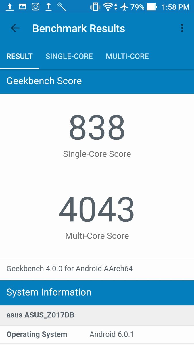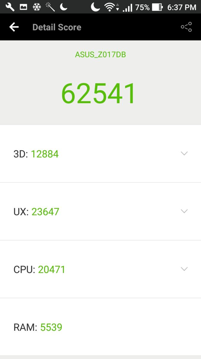 Diotaki SoC kelas menengah dari Qualcomm, Snapdragon 625 octa core dan RAM 3GB, ASUS ZenFone 3 berhasil menyajikan performa yang baik dikelasnya. Antarmuka ZenUI 3.0 yang dijalankannya bisa berjalan dengan sangat mulus tanpa terasa adanya lag saat membuka banyak aplikasi dan berpindah aplikasi. Saat digunakan untuk bermain game, beberapa judul game yang membutuhkan kinerja grafis yang cukup berat seperti misalnya Need for Speed: No Limits bisa dijalankannya dengan mulus. Bodinya pun relatif tidak terasa cepat panas saat diajak untuk bermain game. Berikut hasil benchmark ASUS ZenFone 3 (ZE520KL):