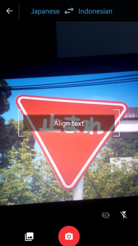 5. Sayangnya tidak semua bahasa mendukung terjemahan secara real-time. Opsi lainnya, tekan tombol capture (icon kamera berwarna merah) untuk memotret tulisan tersebut, lalu pilih tulisan mana dalam foto yang ingin diterjemahkan.