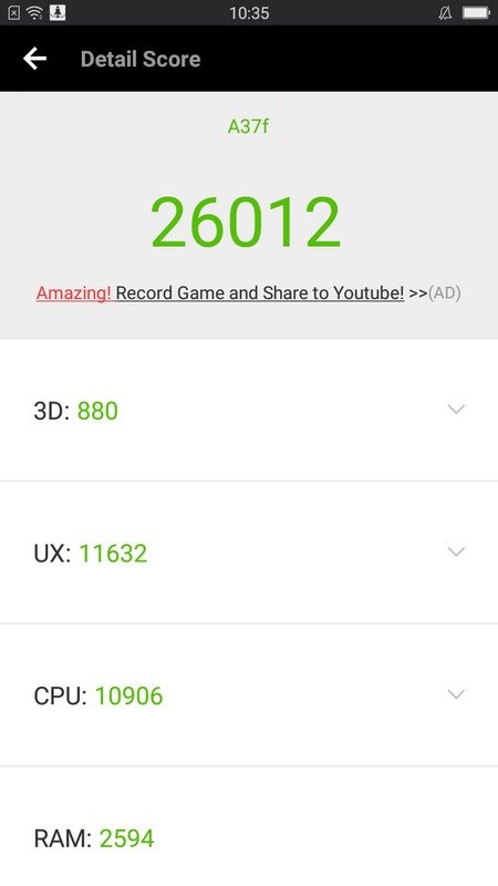 Untuk lebih menjelaskan seperti apa performa dari Oppo A37, simak hasil dari beberapa aplikasi benchmark yang kami jalankan: