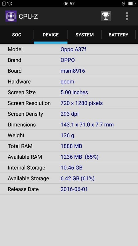 [table]Spesifikasi;Oppo A37