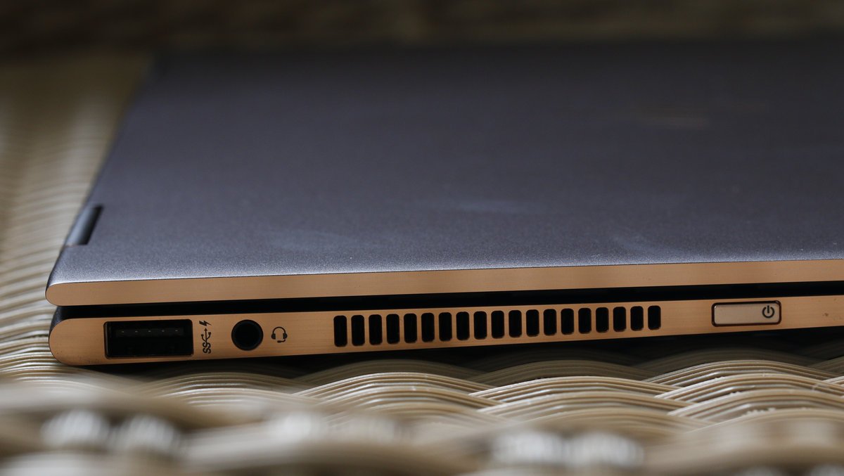 Memiliki ketebalan bodi yang hanya sekitar 12,5mm, Spectre x360 2017 merupakan laptop HP tertipis di kategori layar 13,3 inci. Dengan bodinya yang amat tipis, laptop ini hanya dapat memuat dua port USB Type-C (berfungsi ganda sebagai power adapter), 1 port USB Type A, tombol volume, dan tombol power. Untungnya, HP menyertakan tiga adapter di dalam paket pembelian untuk port HDMI, VGA, dan Ethernet. Sayangnya ini berarti tidak ada slot card reader internal sehingga Anda harus menggunakan card reader terpisah.