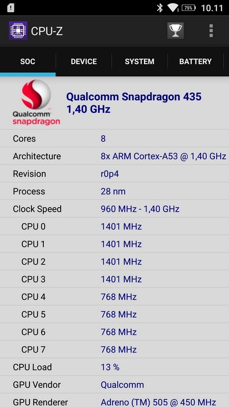 SoC;Qualcomm Snapdragon 430 dengan prosesor octa-core Cortex-A53 1.4 GHz