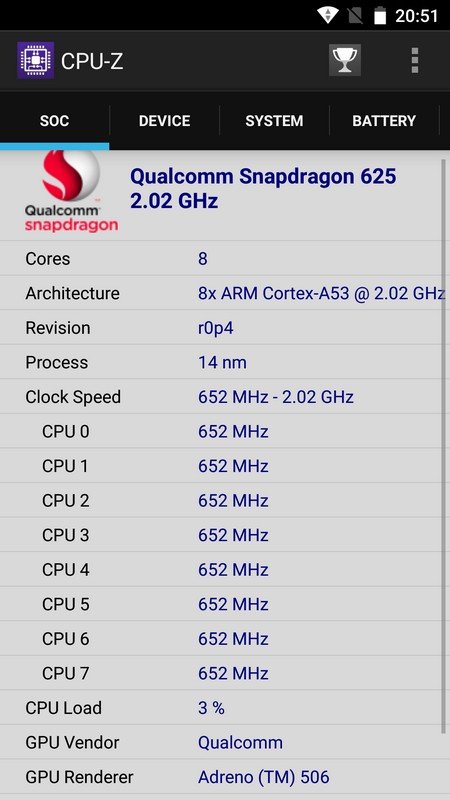 SoC;Qualcomm Snapdragon 625 octa-core