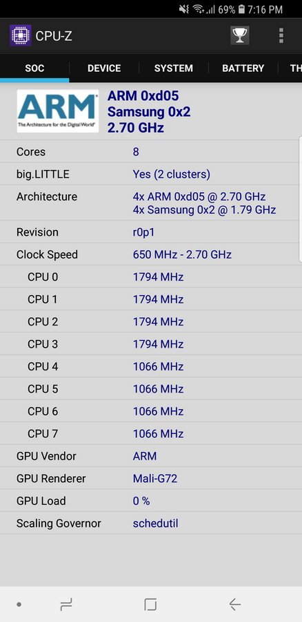 SoC;Exynos 9810 octa-core dengan GPU Mali-G72 MP18