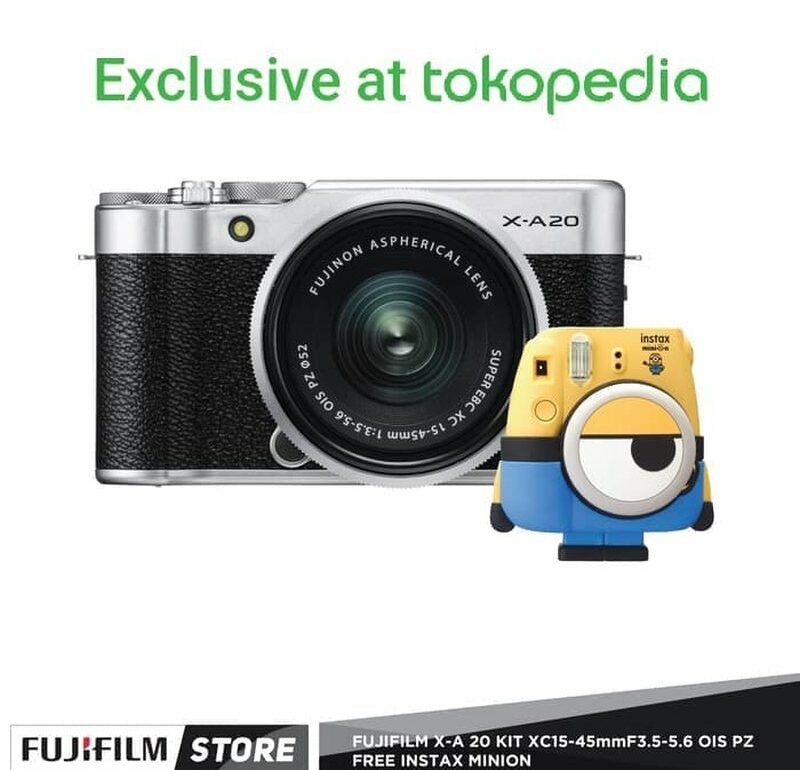 Pre-order Fujifilm X-A20 semakin menarik dengan penawaran potongan harga hingga 1 juta Rupiah dengan metode pembayaran tertentu. Bahkan, konsumen juga bisa mendapatkan gratis kamera Instax Minion.