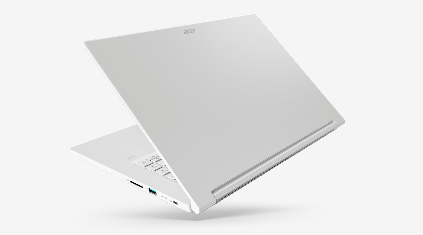 Yang pertama ada ConceptD 5. Ini adalah laptop dengan layar 15,6 inci yang super ringan dengan bobot kurang dari 1,5kg. Warna putihnya juga spesial. Agar tidak cepat menguning, Acer menggunakan proses pengecatan khusus yang dapat menjaga ketahanan cat sekaligus mengurangi bekas sidik jari yang menempel di bodinya.