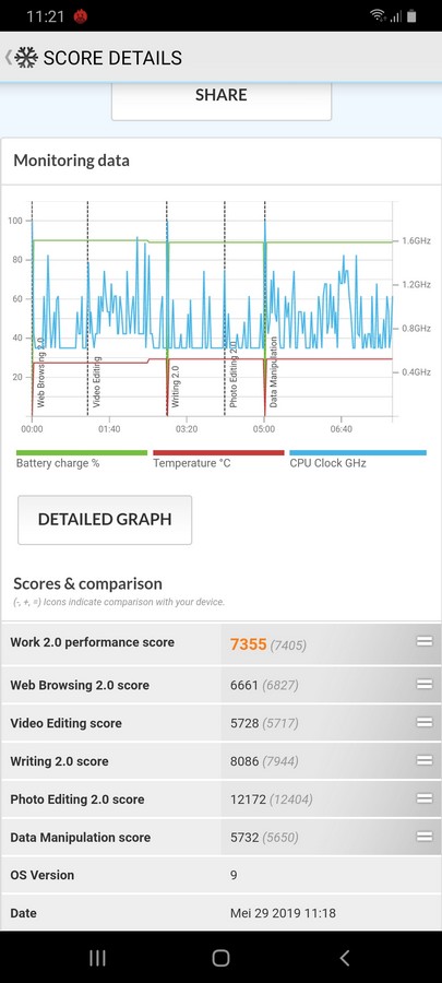 Selain itu suhu pada smartphone ini pun terjaga dengan baik. Selama digunakan menjalankan game atau aplikasi benchmkar, kami tidak merasakan peningkatan panas yang signifikan yang dapat mengganggu pengalaman bermain Anda.