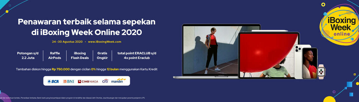 Sebagai bagian dari rangkaian acara EraVersary 2020, Erajaya Group untuk pertama kalinya menggelar acara iBoxing Week Online melalui platform iBox.co.id. Ajang iBoxing Week ke-15 ini akan berlangsung dari tanggal 24 – 30 Agustus 2020, dan akan hadir dengan promo dan kegiatan yang berbeda setiap harinya.