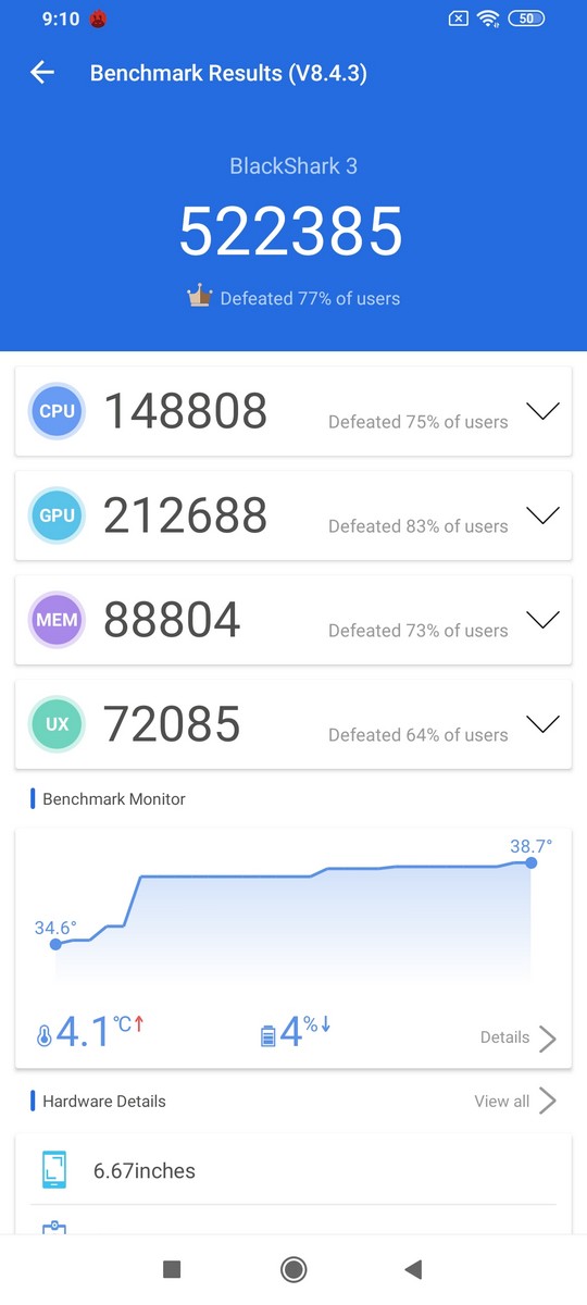 Untuk lebih menggambarkan seperti apa performa dari Black Shark 3, berikut kami sajikan beberapa hasil pengujian menggunakan aplikasi benchmark: