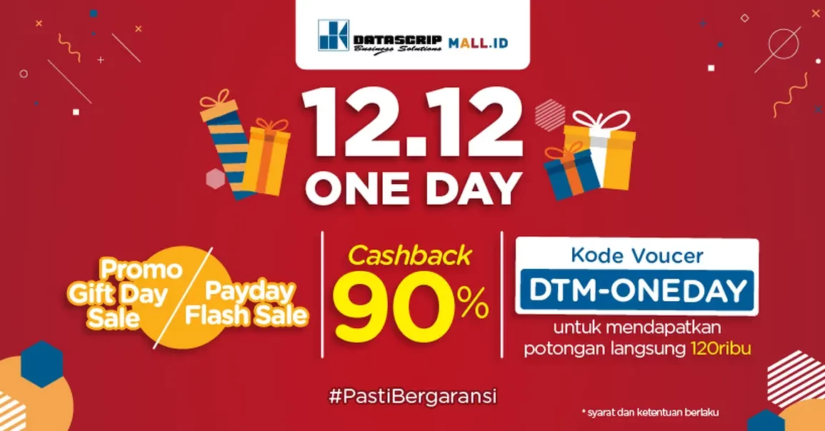 Menyambut Hari Belanja Online Nasional (Harbolnas) 2021 Datascripmall.ID menggelar Promo Gift Day Sale #PastiBergaransi. Promo ini menawarkan diskon hingga 90% untuk berbagai produk dan promo menarik lainnya selama bulan Desember 2021.