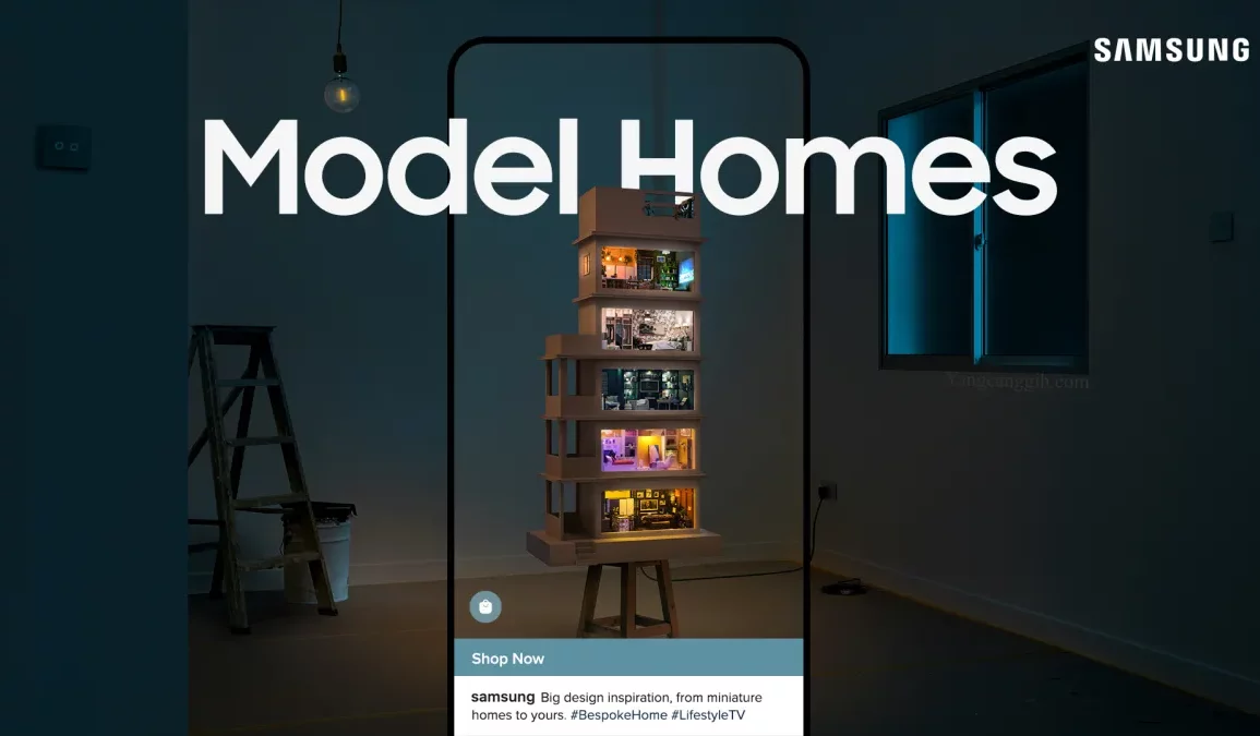 Untuk memulai kampanye ini, lima ruangan miniatur akan diperkenalkan secara bertahap di Instagram Samsung Indonesia @samsungindonesia. Kelima unit studio tersebut akan ditumpuk untuk membentuk satu bangunan Model Homes yang sejalan dengan konsep kreatifnya.