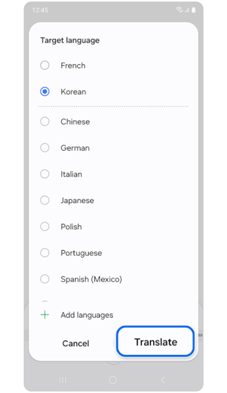 3. Pilih bahasa yang diinginkan, lalu pilih Terjemahkan/Translation.