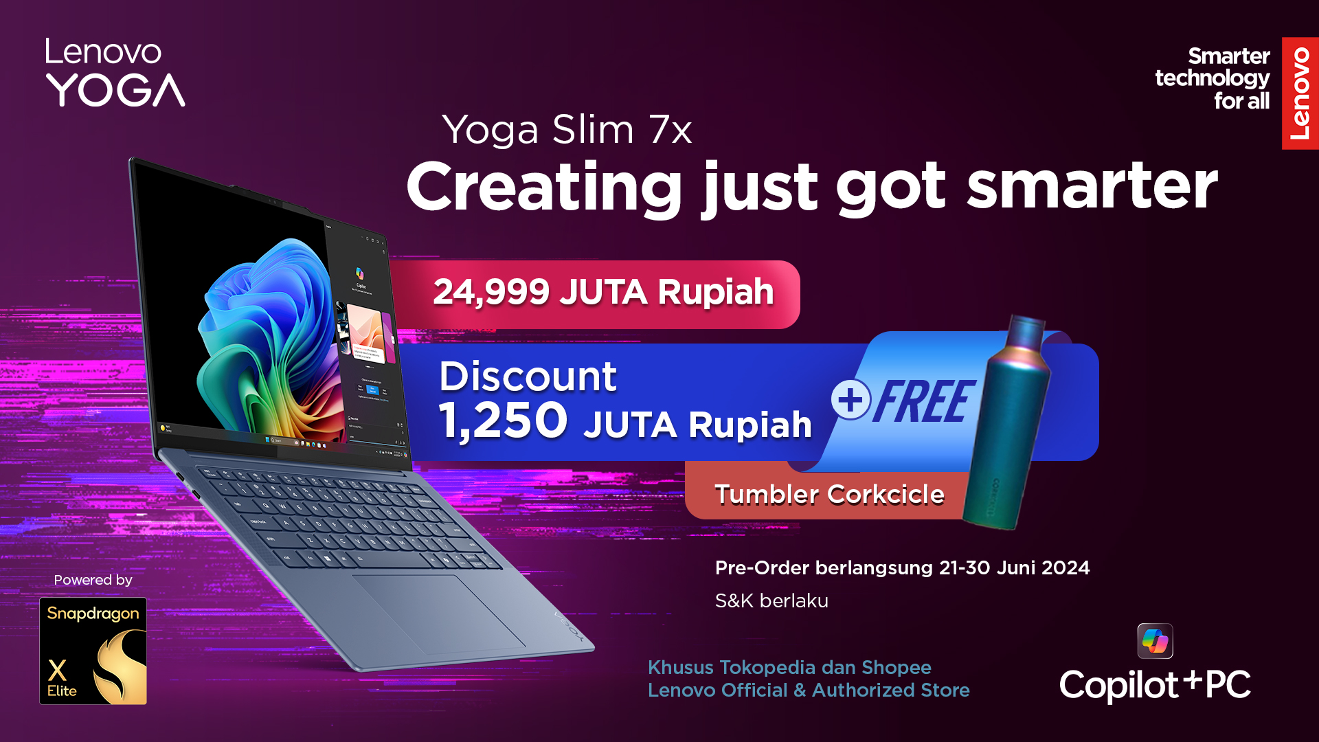 Lenovo Indonesia resmi membuka pre-order YOGA Slim 7x. Perangkat ini adalah Copilot+ PC dengan prosesor Qualcomm Snapdragon X Elite pertamanya untuk pasar Indonesia.