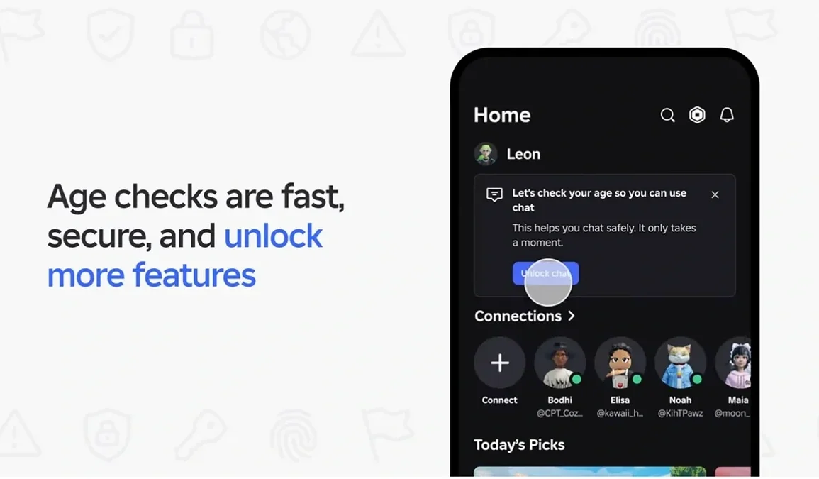 Roblox menjadi platform daring pertama yang mewajibkan verifikasi usia untuk fitur komunikasi di dalam Roblox. Fitur obrolan berdasarkan usia ini dirancang untuk membatasi percakapan, sehingga komunikasi dalam platform Roblox hanya dapat dilakukan bagi pengguna dengan kelompok usia yang sama. Semua pengguna kini dapat secara sukarela mengikuti proses perkiraan usia untuk mendapatkan akses ke fitur obrolan. Kemudian, pada minggu pertama Desember, Roblox akan mulai menerapkan persyaratan perkiraan usia di pasar-pasar tertentu, termasuk Australia, Belanda, dan Selandia Baru. Persyaratan tersebut akan diperluas ke semua pasar lainnya di mana fitur obrolan tersedia, pada awal Januari.